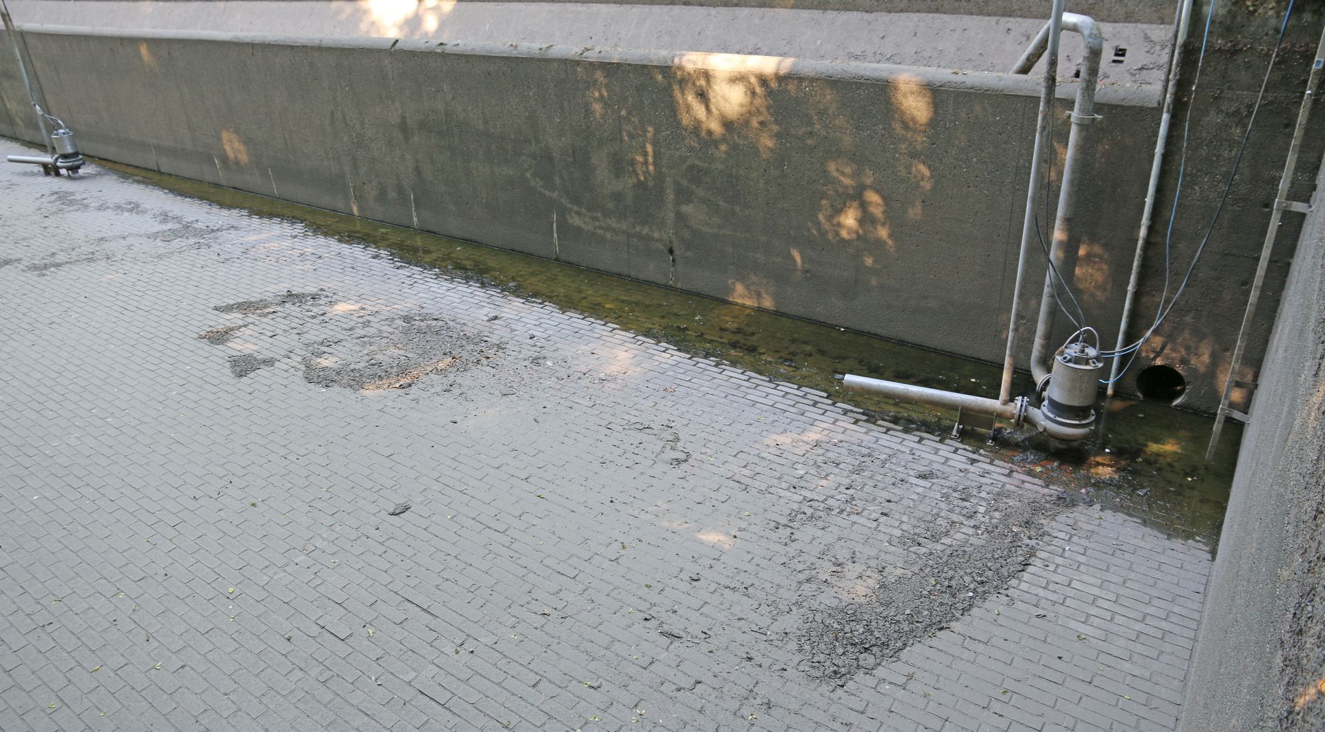 In einem dieser Regenüberlaufbecken mussten aufgrund des verschleißbedingten Ausfalls neue Reinigungs- und Entleerungsanlagen eingebaut werden. Die Wahl fiel dabei auf zwei Injektorstrahler des Typs BR100BF/CR mit jeweils einer MXS-Pumpe von HOMA, die mit dem wirkungsstarken EffTec-Motor und dem energieeffizienten Einkanal-Laufrad ausgestattet sind. Dank der permanenten Motorkühlung der EffTec-Aggregate durch das integrierte PermaCool-System ist ein längerer Reinigungsbetrieb des Beckens als vorher möglich. Zudem wurde die Aufstellung der Injektorstrahler von horizontal in vertikal geändert, um das Reinigungsergebnis weiter zu verbessern. Darüber hinaus wurde auch eine Entleerungspumpe erneuert. Wieder wurde sich für eine MXS-Pumpe von HOMA als Nachfolgemodell der bisherigen Anlage entschieden.